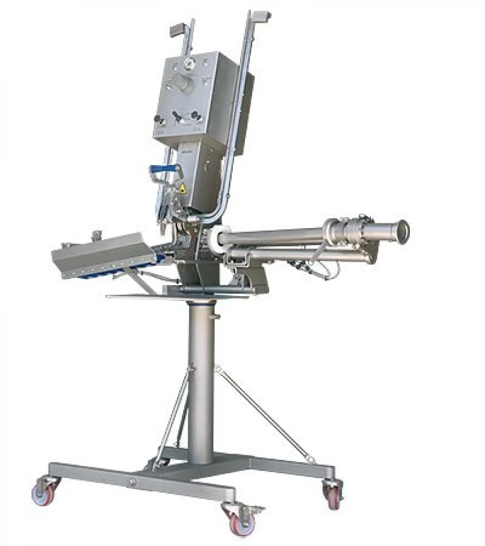 Клипсатор полуавтоматический двухскрепочный КОМПО КН-22С обеспечивает высокое качество клипсования различных наполнителей в полиамидные, целлюлозные, фиброузные и коллагеновые оболочки диаметром от 40 до 80 мм, подходит для выпуска широкого перечня продукции. Напольное исполнение клипсатора КН-22С позволяет легко перемещать его в цеху.