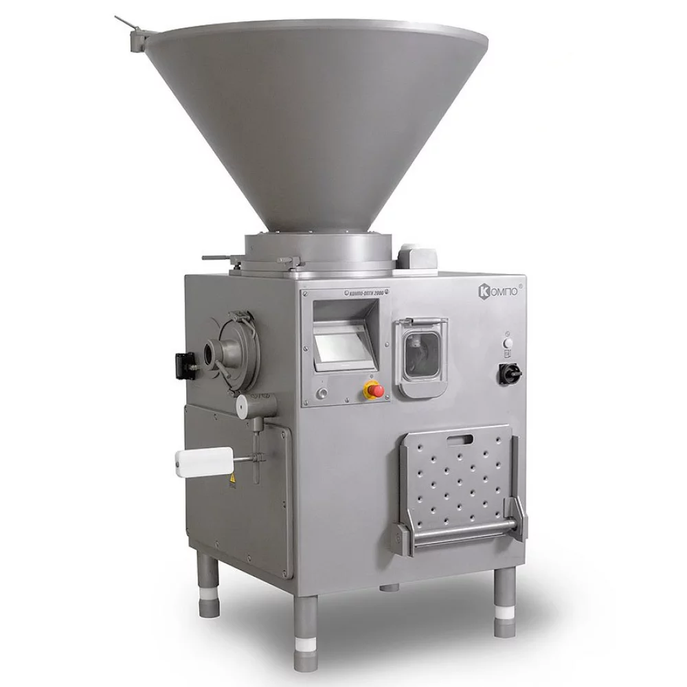 В случае переработки фаршей вареных колбас, предрасположенных к порообразованию, для получения гарантированного результата необходимо использовать ограничитель сечения фарша в бункере, задача которого увеличить площадь контакта фарша с зоной вакуума для большей эффективности удаления воздуха. Вид ограничителя сечения подбирается опытным путем для каждого вида фарша.