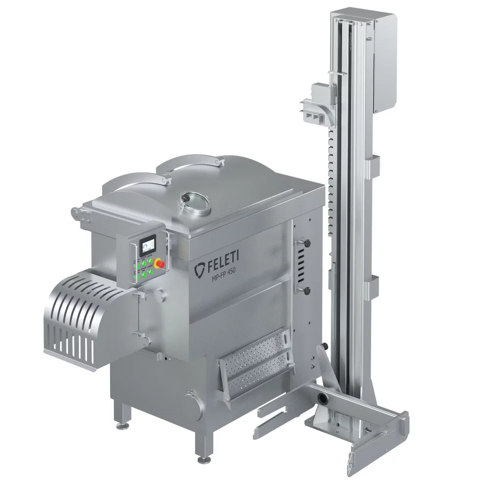 Фаршемешалка может комплектоваться мачтовым подъемником и вакуумной системой.